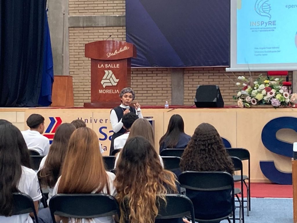 Con motivo del Día Internacional de la Paz, INSPyRE A.C. facilitó un espacio de reflexión en la Universidad La Salle de Morelia, Michoacán, bajo el lema: “¡Jóvenes, artesanos de paz, peregrinos de la esperanza!”. Este encuentro reunió a estudiantes de bachillerato y licenciatura con el objetivo de despertar en ellos la conciencia sobre su papel fundamental en la construcción de un futuro más pacífico.